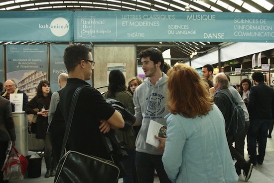 l'Università di Nizza Sophia Antipolis è presente in questa fiera sin dal suo inizio; con oltre 250 m2 di stand, con la presenza di consiglieri, personale amministrativo, insegnanti e studenti per fornire consigli e informazioni mirate alle esigenze dei visitatori.