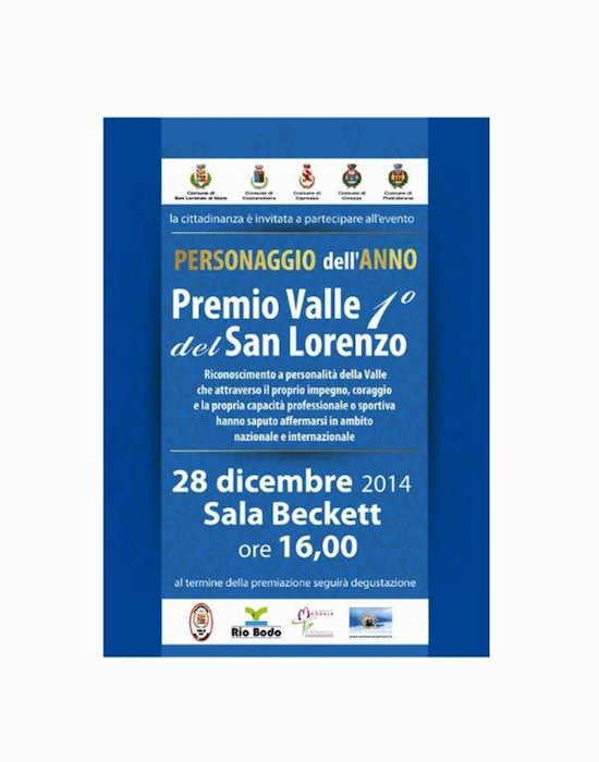 Teatro gremito per la prima edizione del premio Valle del san Lorenzo.L'amministrazione Comunale di San Lorenzo al mare ha ospitato nella sala Sala Beckett il debutto di questo premio che vuole diventare nei prossimi anni un'appuntamento fisso per chiudere in bellezza gli eventi dell'anno nella valle.