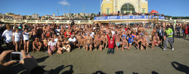 Alla Spiaggia d'Oro di Imperia 208 ardimentosi di tutte le età si sono immersi nelle acque del mar Ligure baciati dai raggi di un sole decisamente primaverile. La Manifestazione organizzata dai due Direttori Crommar Vanessa e Luca Ramone della Società Balneare Turistica Imperiese, in collaborazione con l'Assessorato alle Manifestazioni nella figura dell'assessore di Luca Volpe di concerto con il Comune di Imperia, giunge alla Terza edizione, e di anno in anno gli ardimentosi sono sempre in magghior numero. La folla accorsa all'evento è stata magistralmente curata da uno speaker della levatura di Gianni Rossi, sempre attento a sottolineare ogni più piccolo particolare come il più giovane partecipante, una deliziosa bambina, G.E. di 3 anni compiuti lo scorso Ottobre e il più anziano, Anselmo Secona del 1931. Alle ore 12.00 in punto, Gianni Rossi ha iniziato il conto alla rovescia e i 208 impavidi si sono lanciati sorridenti nelle acque non proprio "caldissime" sotto l'occhio vigile della Protezione Civile a bordo di un natante attrezzato. L'Assessore Luca Volpe "La festa è stata bellissima, il sole ed il clima sono stati ottimali, e sopprattutto la gente ha risposto molto bene all'evento e questo per noi, è motivo di grande soddisfazione". Il Sindaco Paolo Strescino "Solo la bronchite mi ha trattenuto a terra quest'anno, comunque spero che questa manifestazione eccezionale diventi un fiore all'occhiello invernale, a dimostrazione che la vivibilità nella nostra città, a contrario delle recenti statistiche è da classificarsi in posizioni ben più elevate".