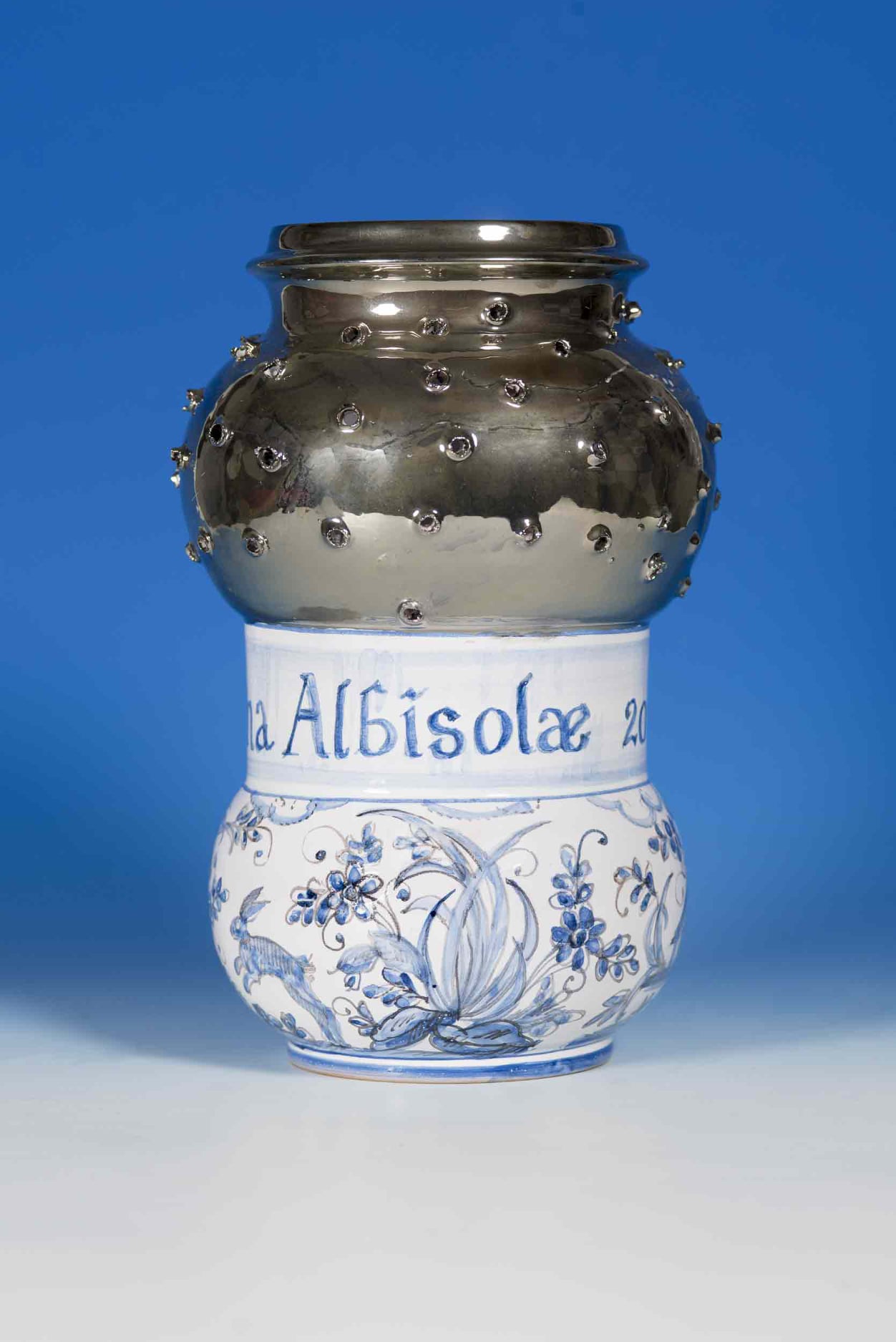 Ovviamente la ceramica ha ruolo primario nella realizzazione delle opere in mostra, quasi tutte inedite, e non poteva essere altrimenti per un docente di Tecniche della ceramica e per uno dei pochi in Albisola ad avere competenza piena su molteplici aspetti di questa tecnica: dalla foggiatura al tornio e a colaggio, alla modellazione e formatura di prototipi e stampi in gesso, alle più svariate tecniche decorative, dall’ingobbio alle decorazioni con l’aerografo, le decalcomanie, i lustri e i metalli preziosi.